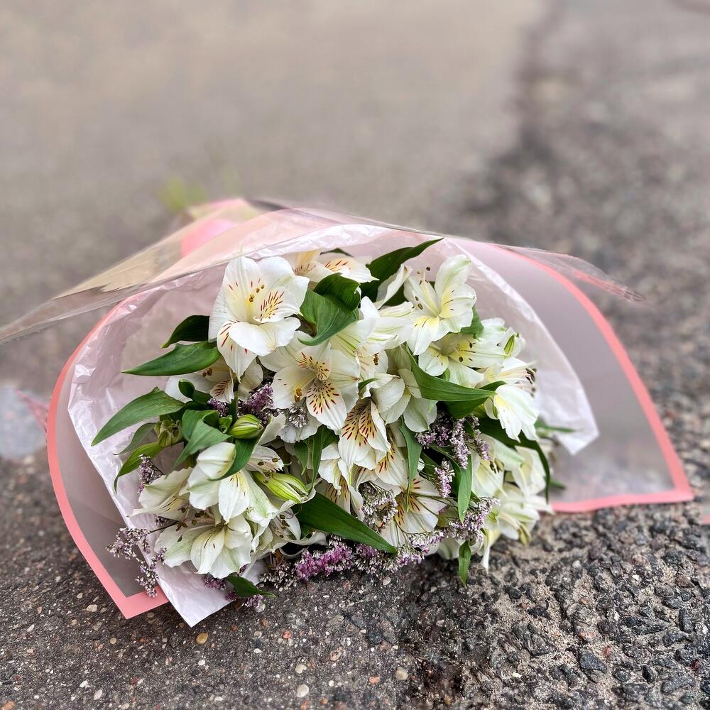 Альстромерия – 5 шт. Лимониум – 2 шт. Упаковка дизайнерская – 1 шт.