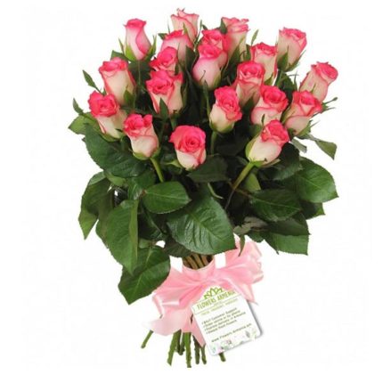 multi colored rose – 21 шт. ribbon pink – 1 шт. the leaves of ruscus – 15 шт.