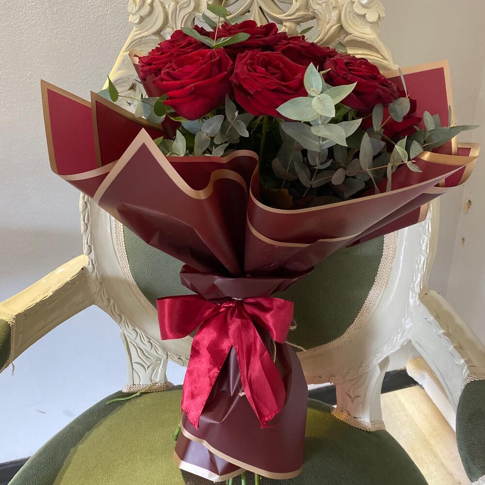 11 кустовых пионовидных роз в дизайнерской упаковке