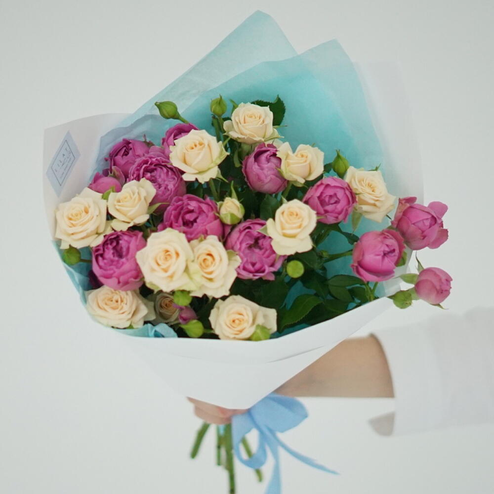 packaging design – 2 шт. gift message card – 1 шт. peony spray rose – 3 шт. free delivery – 1 шт. care instruction – 1 шт. spray rose cream – 4 шт.