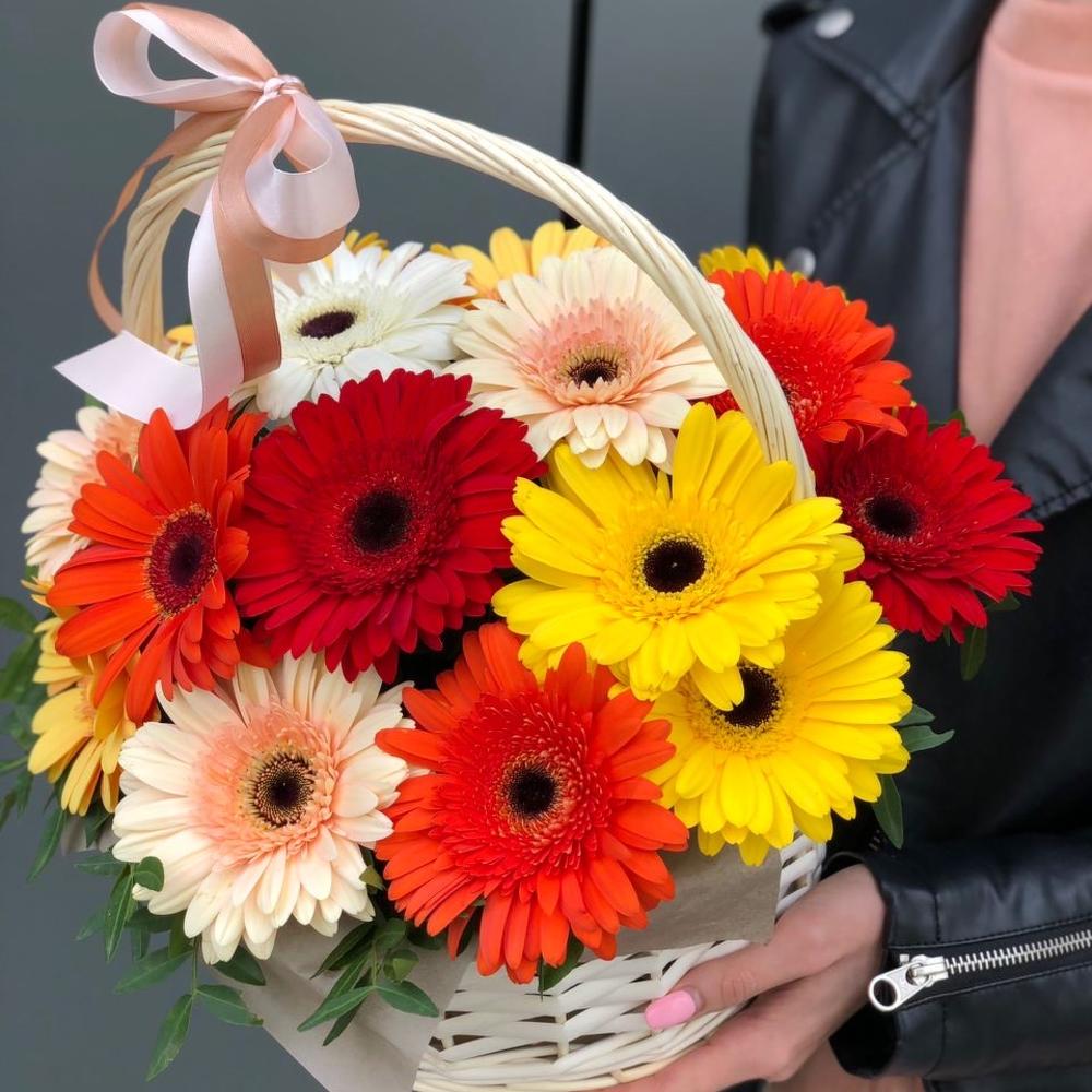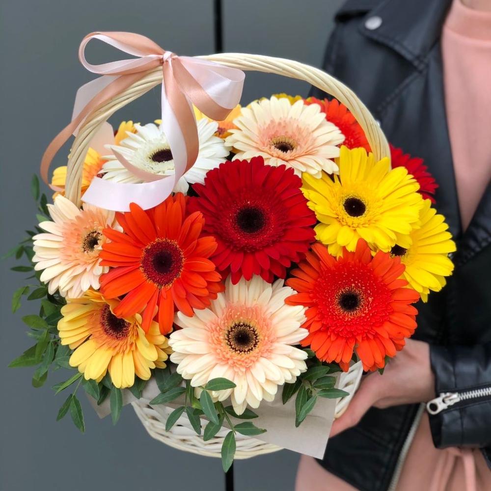 Корзина из гербер и зелени !