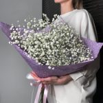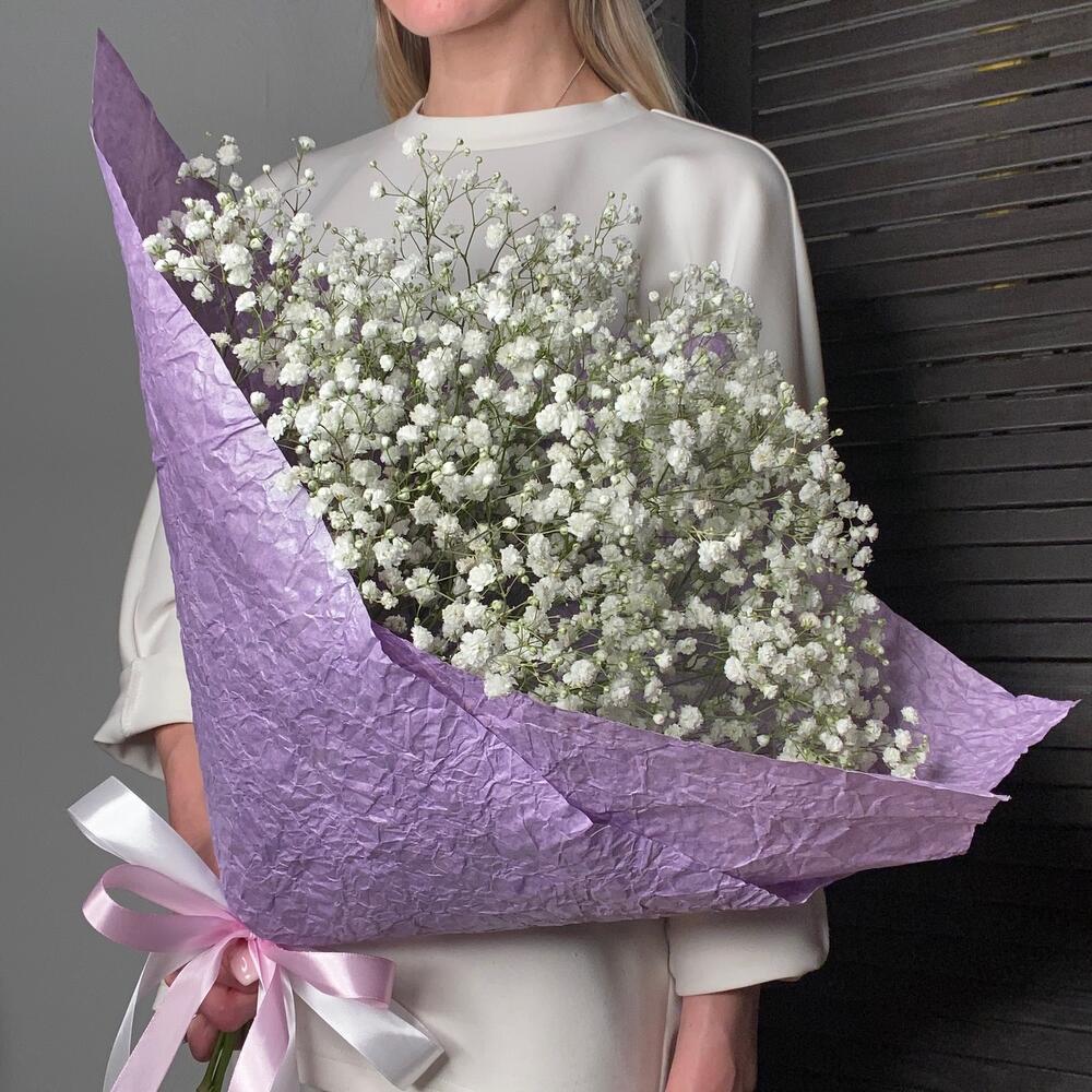 гипсофила белая – 5 шт.Корейская пленка – 1 шт.Атласная лента – 2 шт.