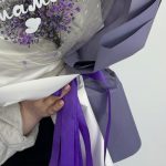 «Лавандовое созвездие» Букет из розы, гвоздики, статица и хлопка