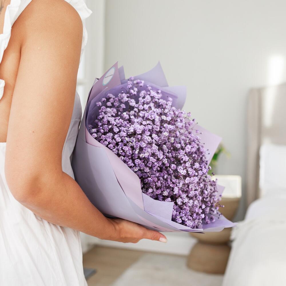 Очаровательный букет из воздушной гипсофилы. Ни одна дама, точно не останется равнодушной при виде такого букета .Инструкция по уходу за цветами прикреплена к каждому заказу.Цветы гипсофилы отличаются стойкостью и даже при высыхании не теряют, декоративности и цвета. Что позволяет, долгое время украшать интерьер в качестве сухоцветов.Подпишем открытку с вашими пожеланиями бесплатно