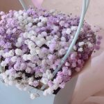 “Сиреневый туман” – композиция из гипсофилы в шляпной коробке