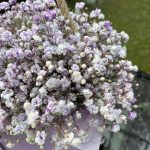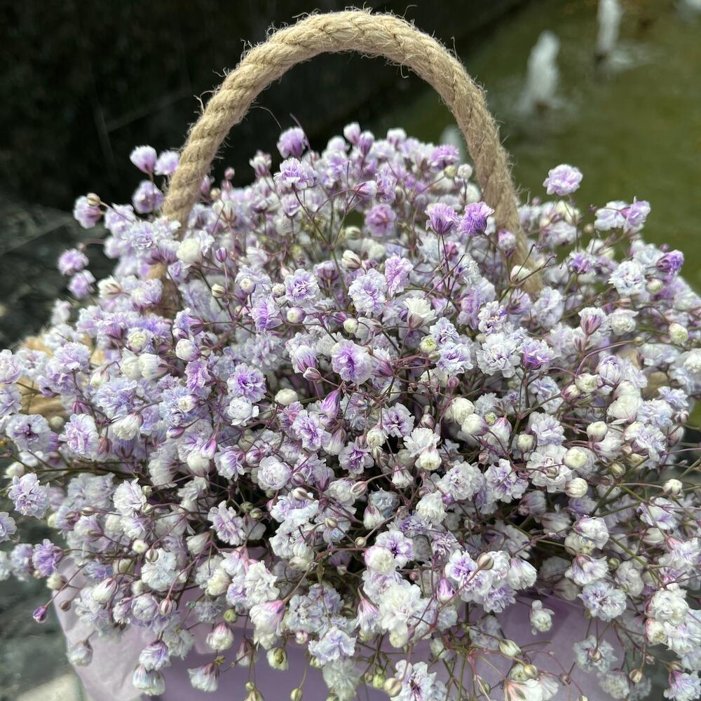 Композиция из гипсофилы в шляпной коробке «черника со льдом»