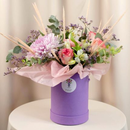 Букетик в шляпной коробочке, который будет долго радовать получательницу своей красотой. Отличный подарок на День рожденья, без повода, для украшения дома или офиса.