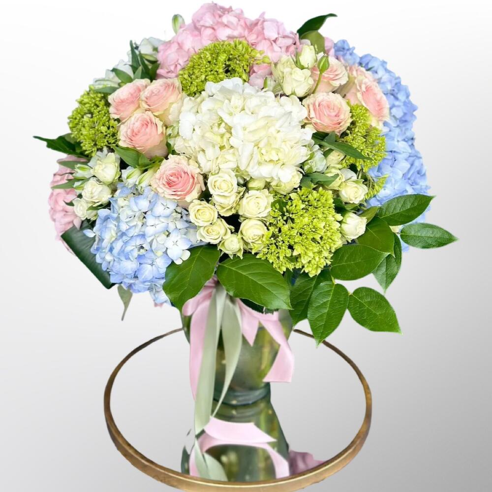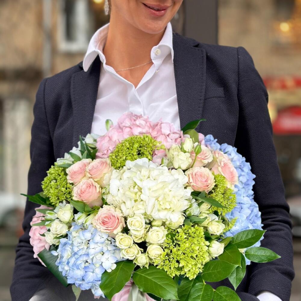 Альстромерии, Гортензии, Кустовые розы, Пионовидные розы, Розы