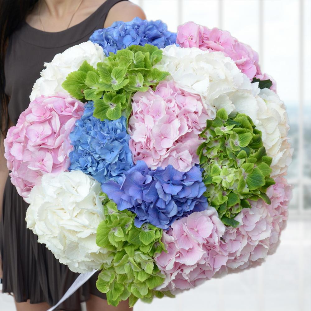 Букет из 15 разноцветных гортензий