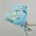 Гортензия – 5 шт.Лента атласная – 1 шт.Пленка матовая – 1 шт.подкормка для срезанных цветов – 1 шт.инструкция по уходу за цветами – 1 шт.хорошее настроение в подарок – 1 шт.
