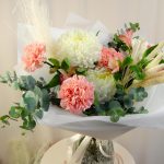 Альстромерия – 2 шт. Хризантема – 3 шт. Гвоздика – 2 шт. Гербера – 1 шт. Оформление – 1 шт. Седум – 3 шт. мискантус – 2 шт. сухоцветы микс – 1 шт.