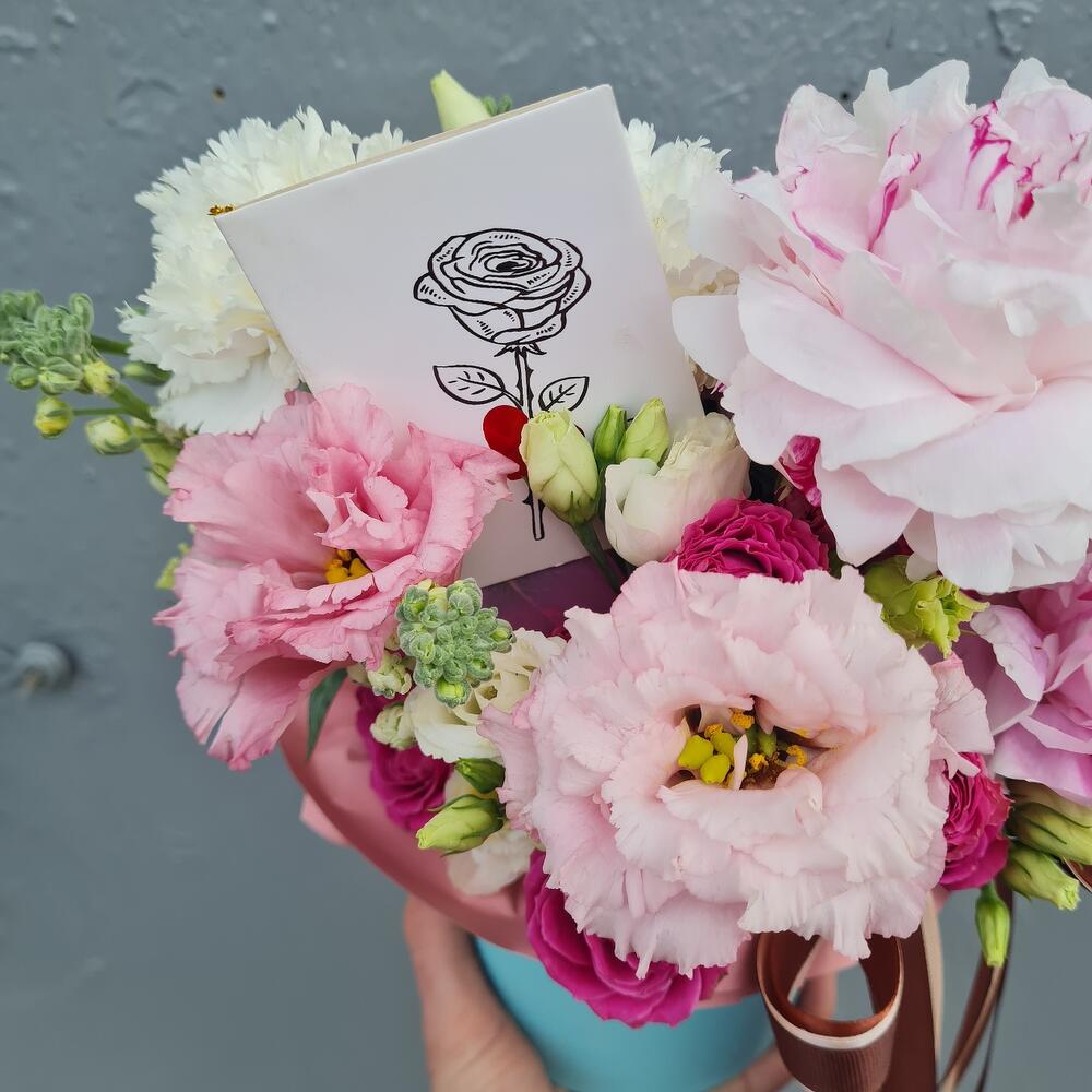 Эустома – 3 шт.Пион Сара Бернар – 2 шт.Маттиола белая – 3 шт.Диантус сортовой – 3 шт.момоко – 1 шт.классик сенсейшен – 3 шт.