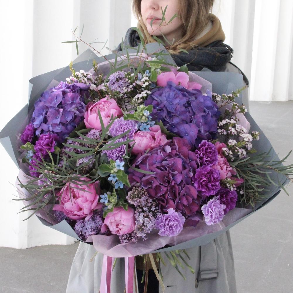 Лиловый поцелуй - Гортензии, пионы и восковой мирт