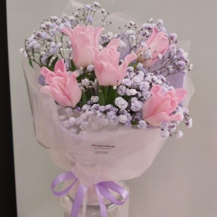 Букет из тюльпанов с гипсофилой