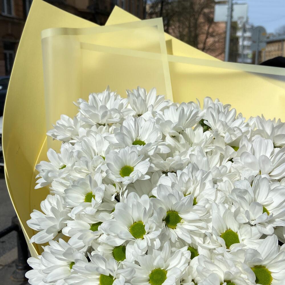 Лента атласная – 2 шт.Хризантема Ромашковая – 13 шт.Фоамиран (упаковка) – 4 шт.подложка бумажная – 2 шт.