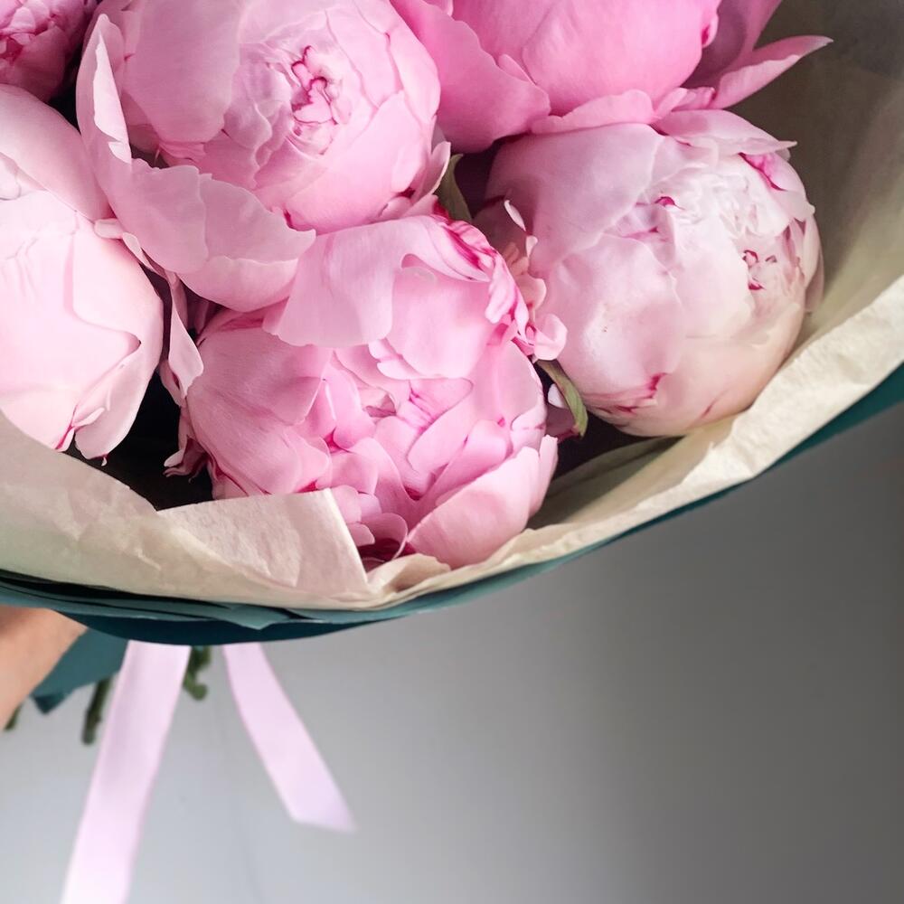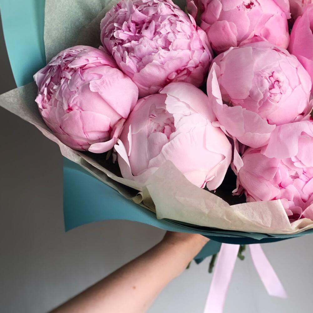 Лента – 2 шт.Пион – 9 шт.Тишью – 2 шт.Упаковка дизайнерская – 4 шт.инструкция по уходу за цветами – 1 шт.хризал – 2 шт.