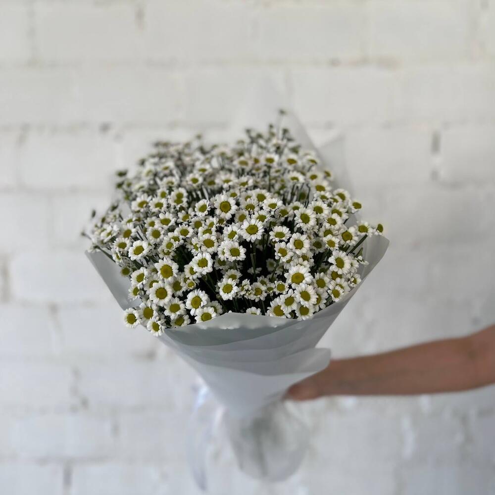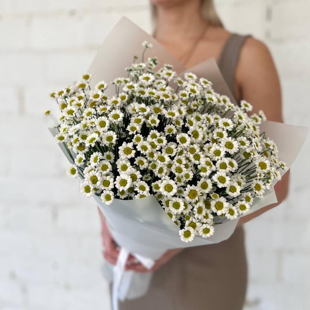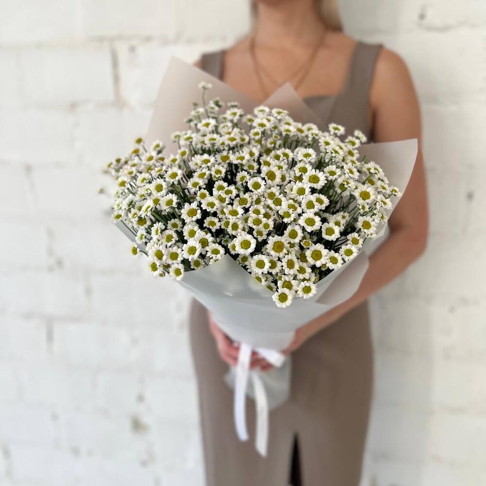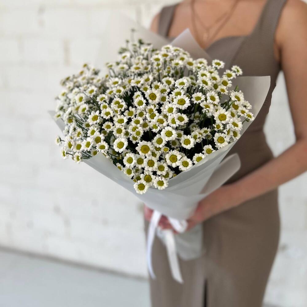 Букет из белоснежных ромашек и воздушной гипсофилы "Ромашки в снегу"