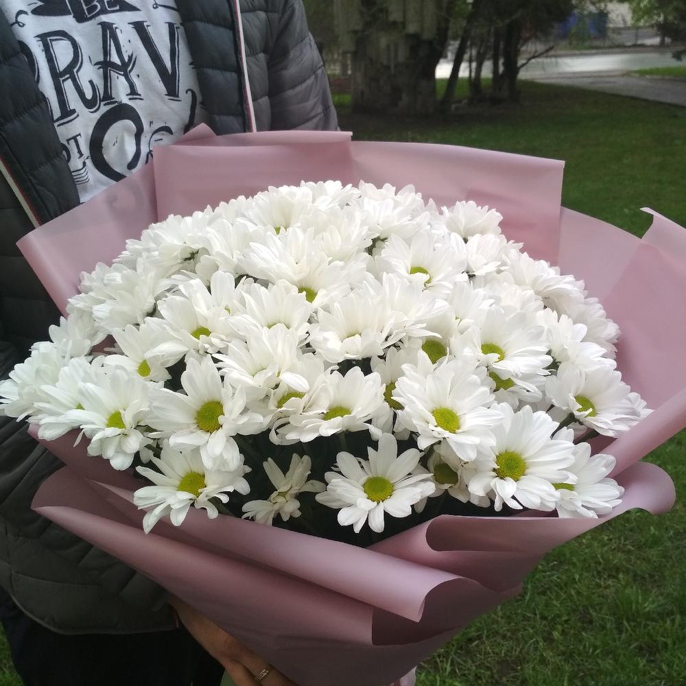 Шикарный букет из белых хризантем подарит настроение не только вам, но и вашим близким.