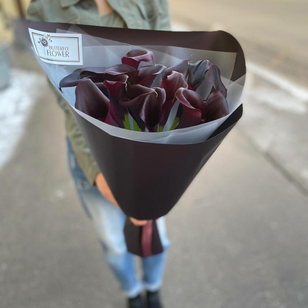 Букет из 17 бордовых пионов в дизайнерской упаковке "Ванда Вижн"