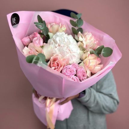Гортензия – 4 шт. кустовые розы – 10 шт.