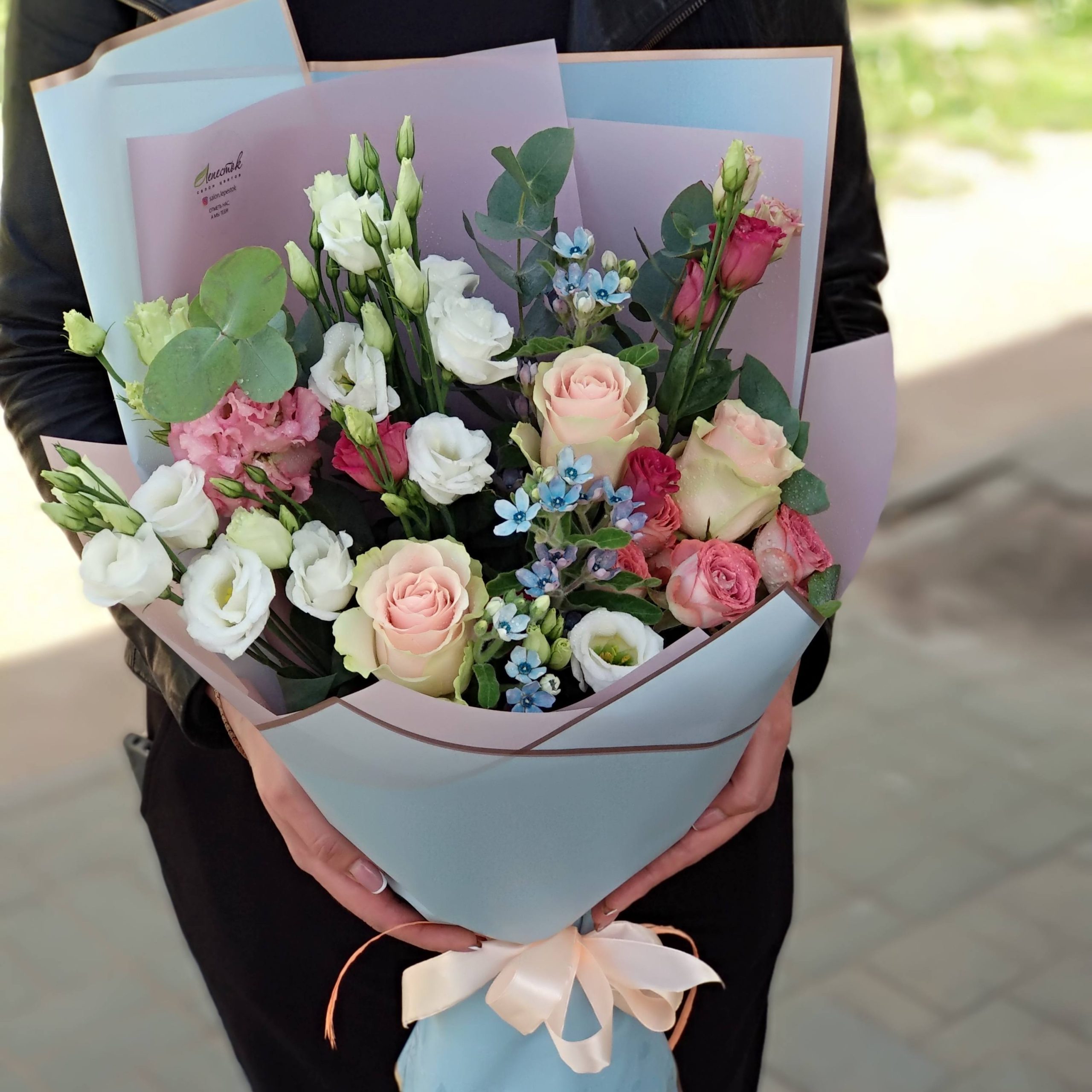 Гвоздики, Кустовые розы, Лизиантусы, Пионовидные розы, Розы