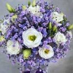 Гипсофила – 7 шт.Лизиантус – 5 шт.Оазис – 1 шт.Коробка d12 – 1 шт.