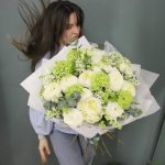 “Эвкалиптическая роскошь” гортензия и пионовидная кустовая роза