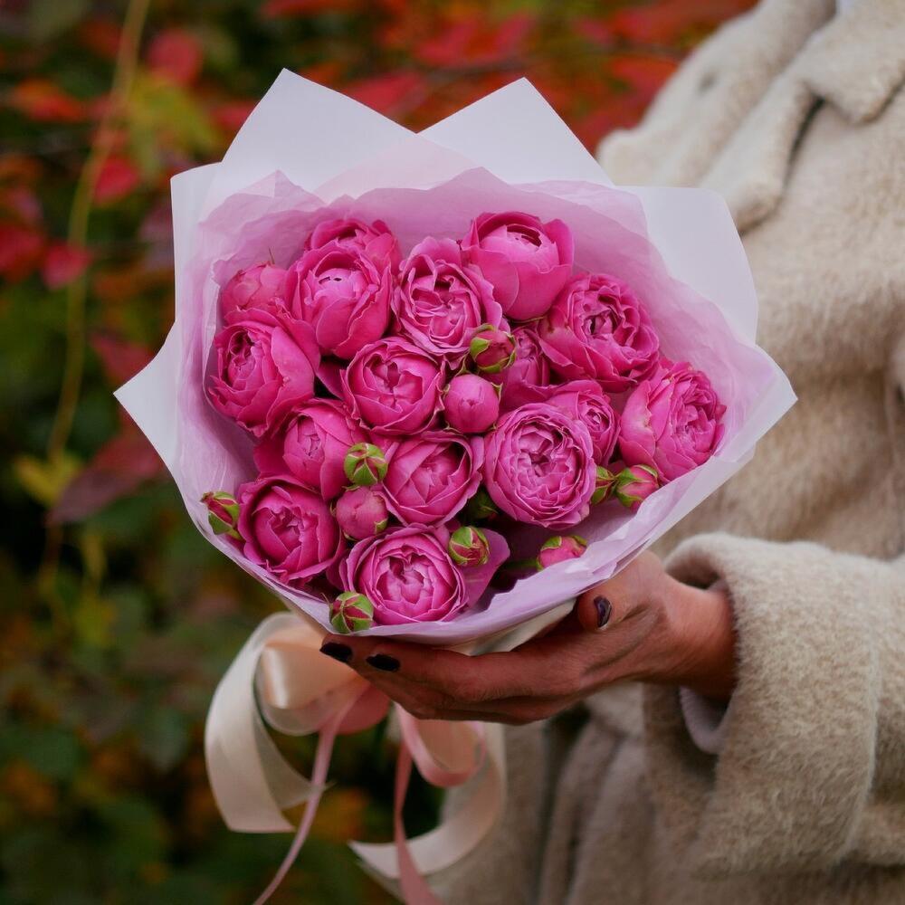 Misty Bubbles пионовидная роза – 7 шт. Упаковка дизайнерская – 1 шт. Открыточка с вашими пожеланиями – 1 шт.