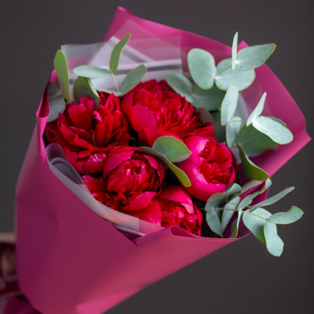 Тишью – 1 шт.Атласная лента – 2 шт.Корейская пленка – 4 шт.пион red sharm – 5 шт.