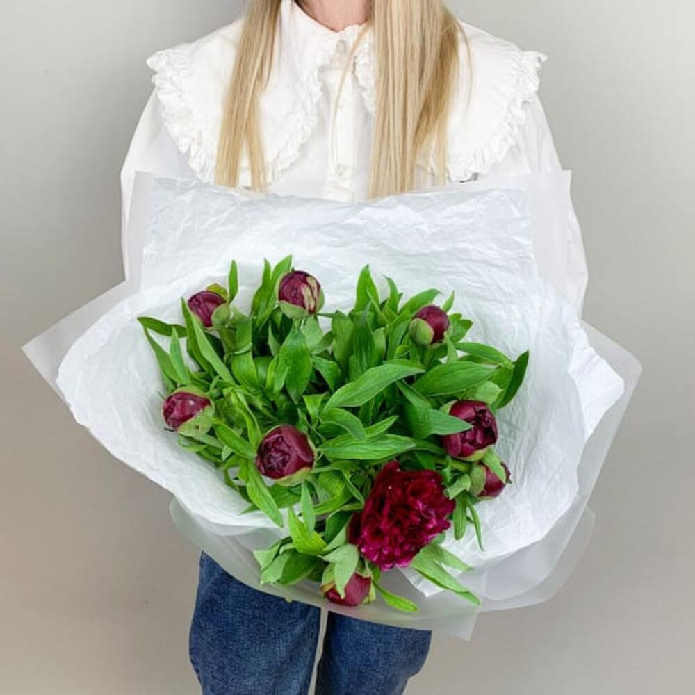 Букет из бордовых пионов Standart 9 шт