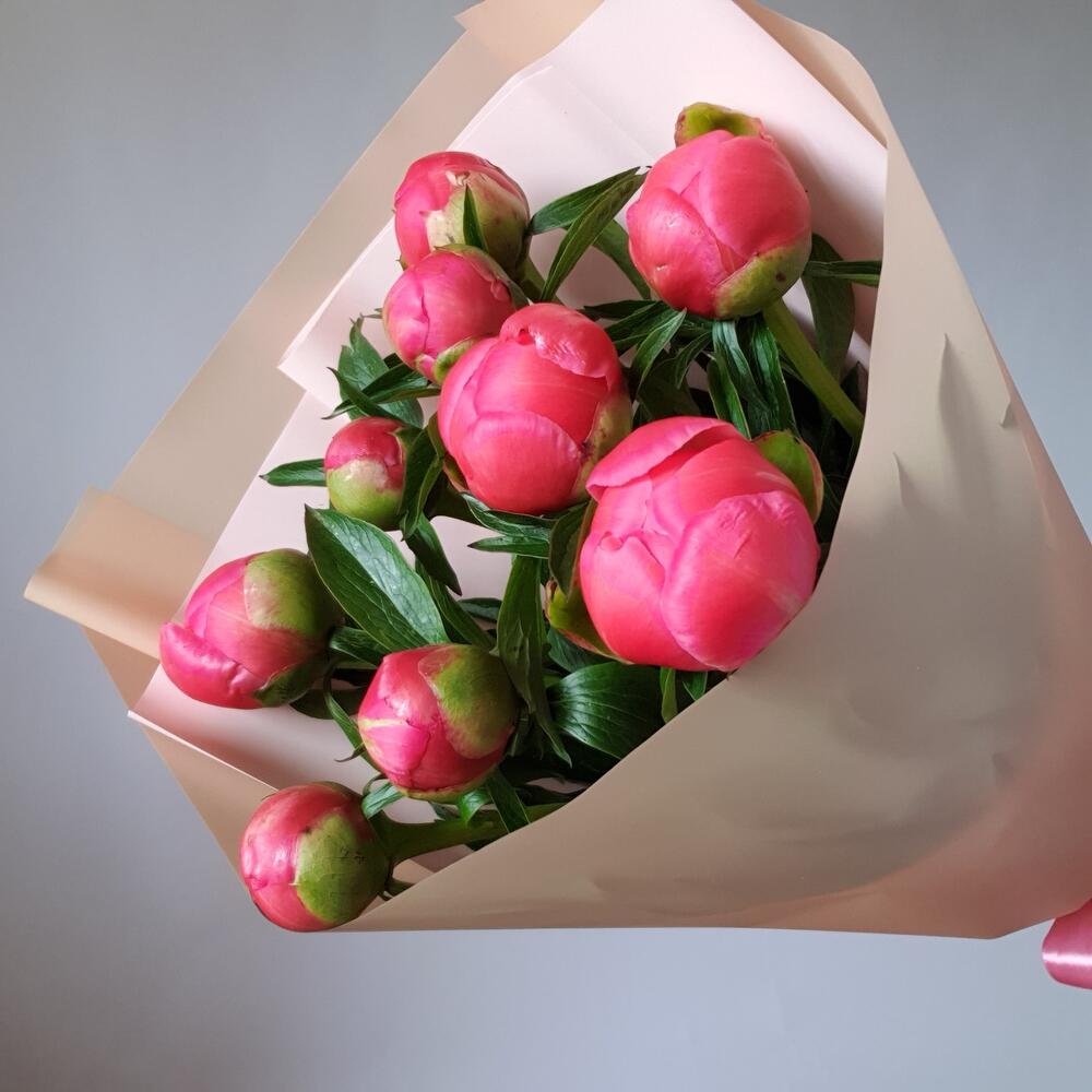 Упаковка – 1 шт.Лента атласная – 1 шт.Пион коралловый – 9 шт.