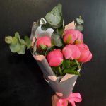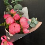 Пион Коралл Шарм (Coral Charm) – 7 шт.Эвкалипт – 1 шт.Упаковка дизайнерская – 1 шт.