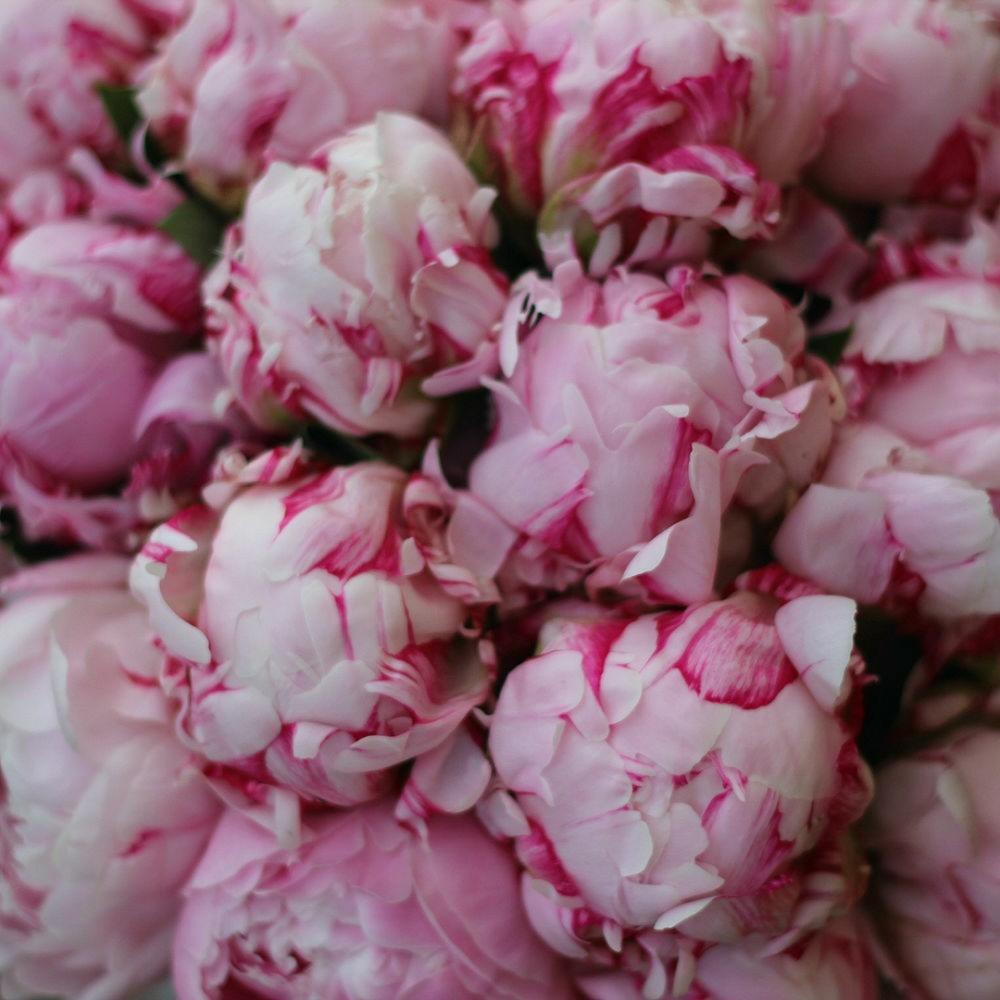 Пион – 25 шт.Шляпная коробка – 1 шт.Оазис флористический – 2 шт.