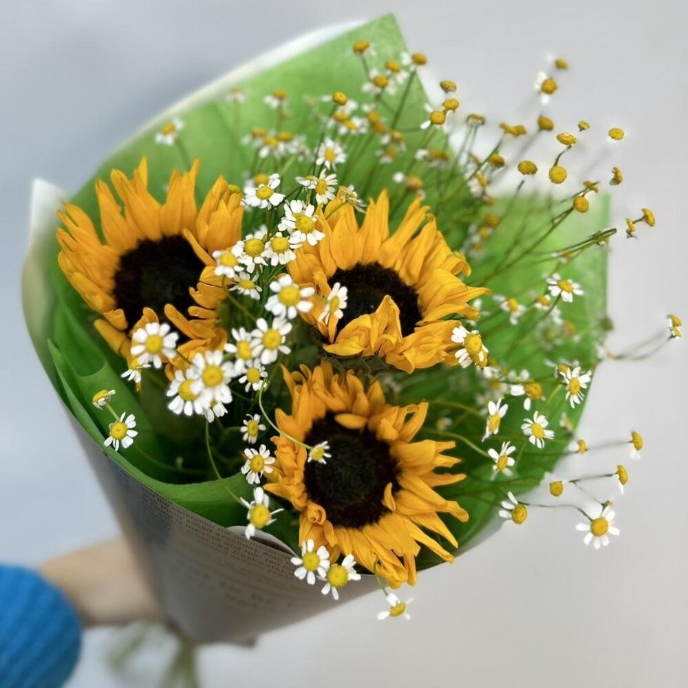 Подсолнух – 3 шт.Матрикария – 3 шт.Оформление – 1 шт.
