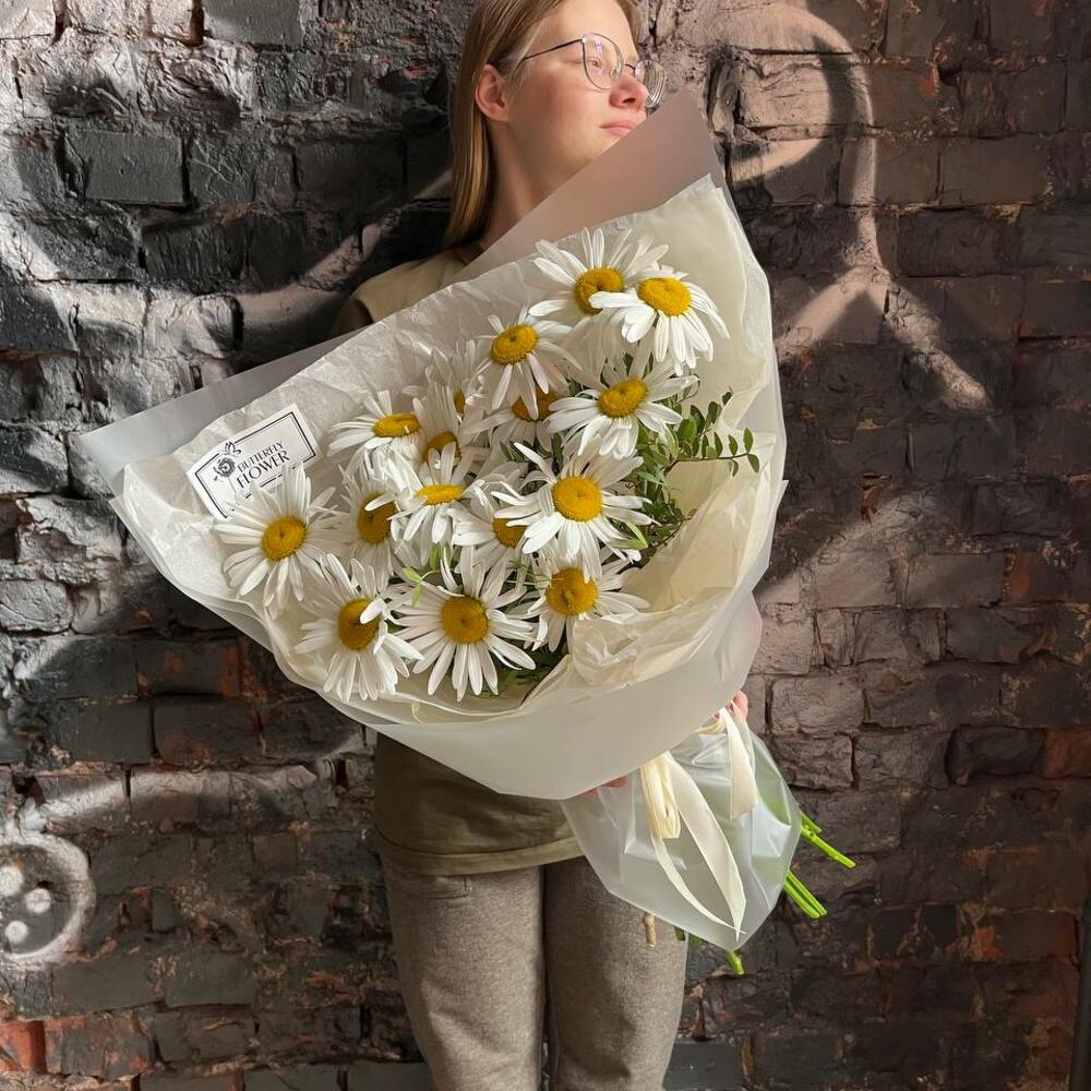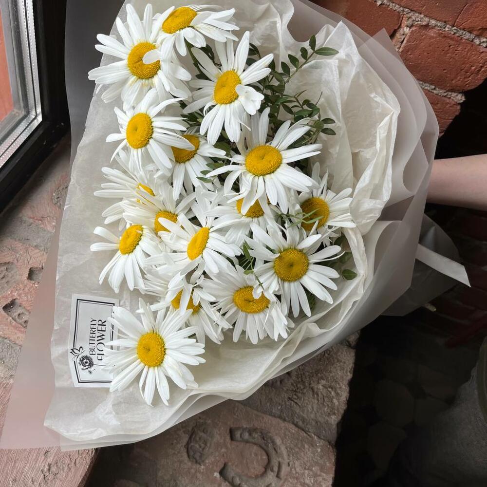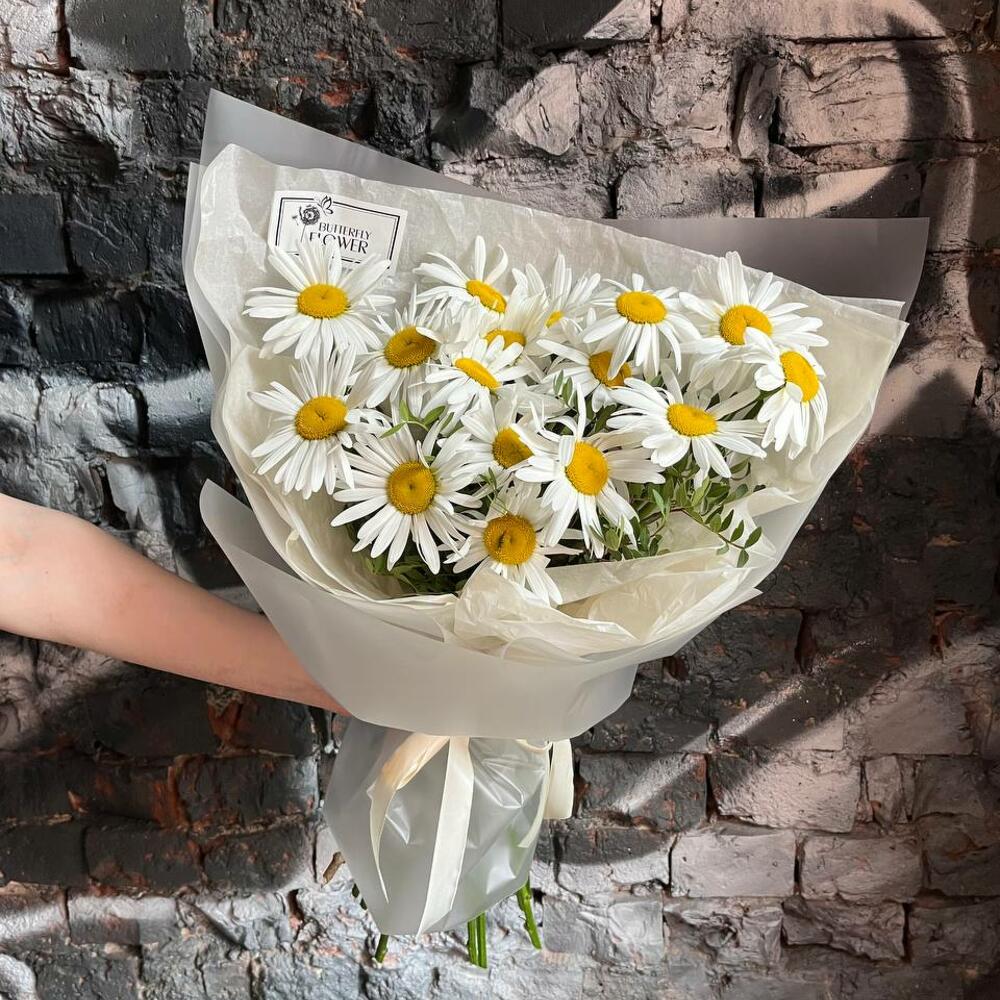 Букет из 15 садовых ромашек в стильной упаковке “Авирам”