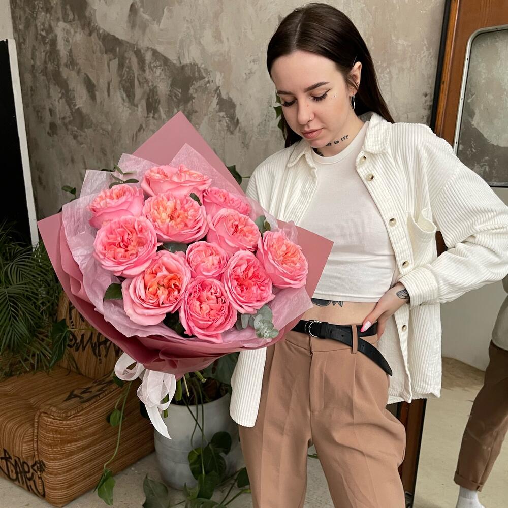 11 пионовидных роз Пинк Экспрешн