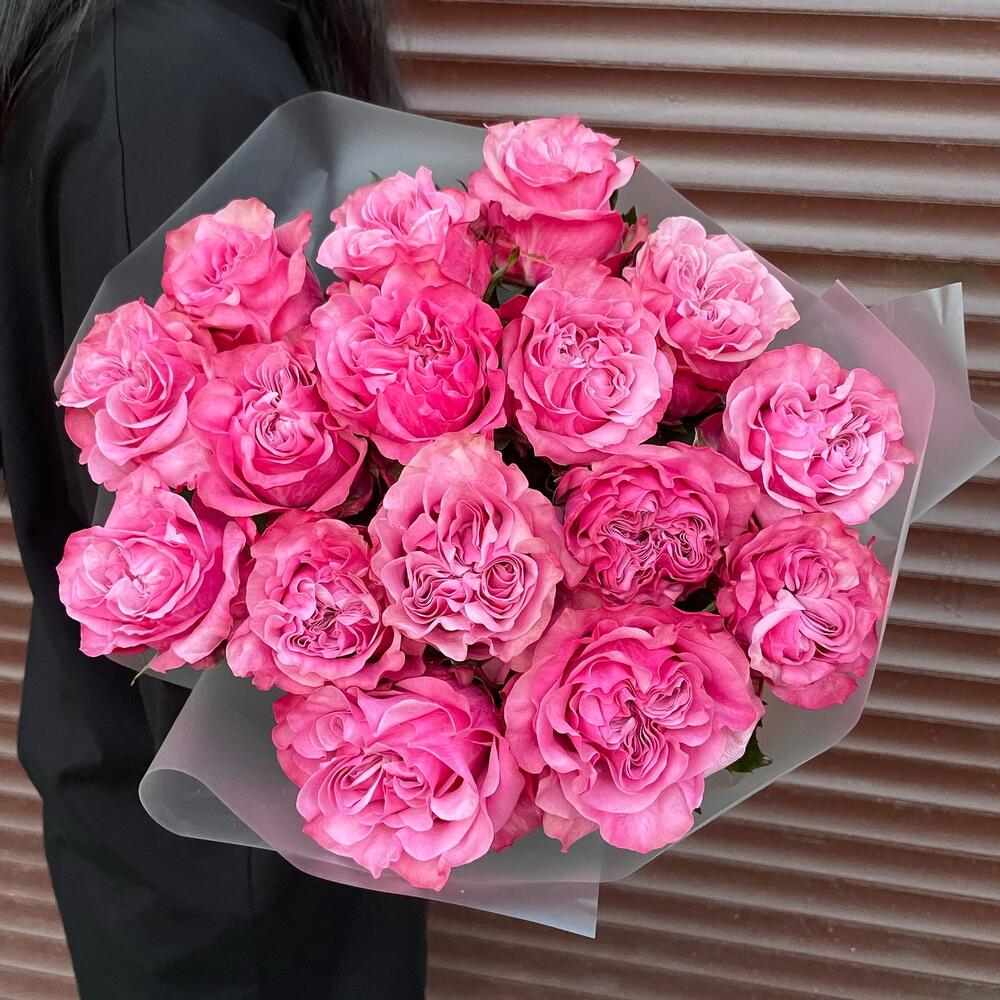 15 пионовидных кустовых роз монобукет