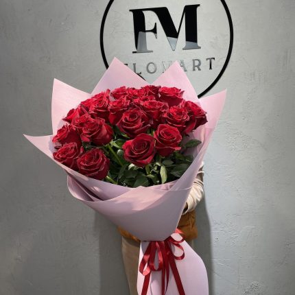 Роза – 25 шт. аквабумага – 1 шт. Атласная лента – 1 шт.