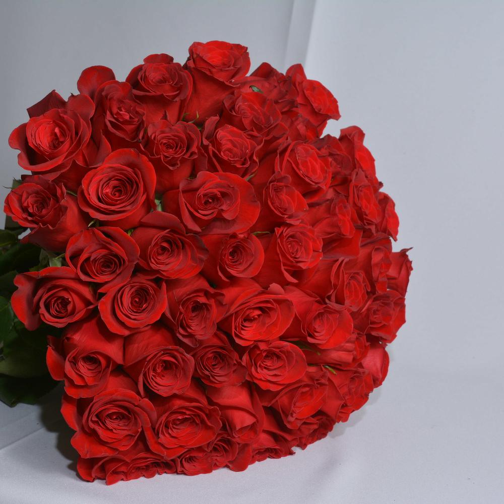 роза explorer 50 см – 51 шт.Пленка прозрачная – 1 шт.Лента атласная – 1 шт.