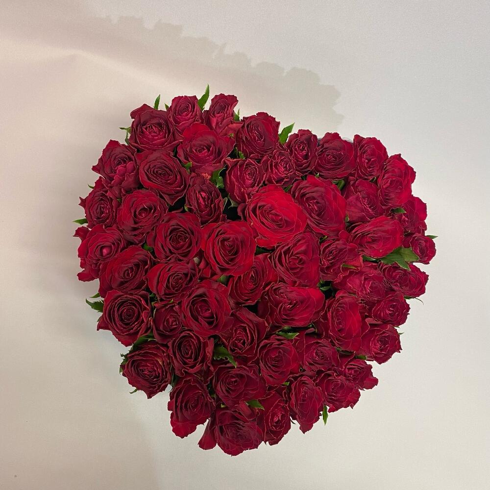 Роза – 51 шт.Коробка сердце – 1 шт.Оазис флористический – 2 шт.