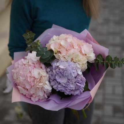 “Эвкалиптическая роскошь” гортензия и пионовидная кустовая роза