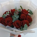 роза эквадор 70 см красная – 9 шт. Эвкалипт Микс – 3 шт. Упаковка дизайнерская – 1 шт.