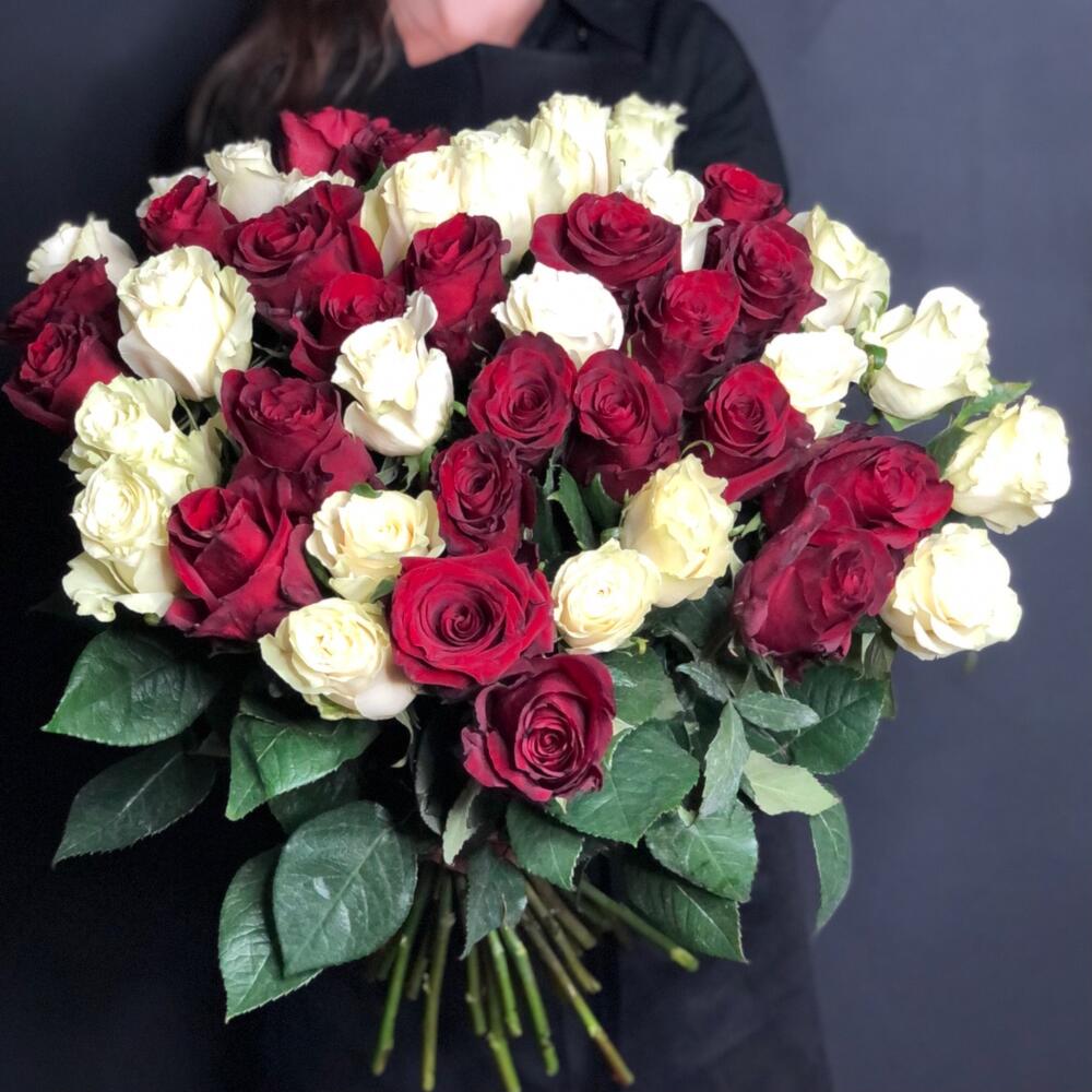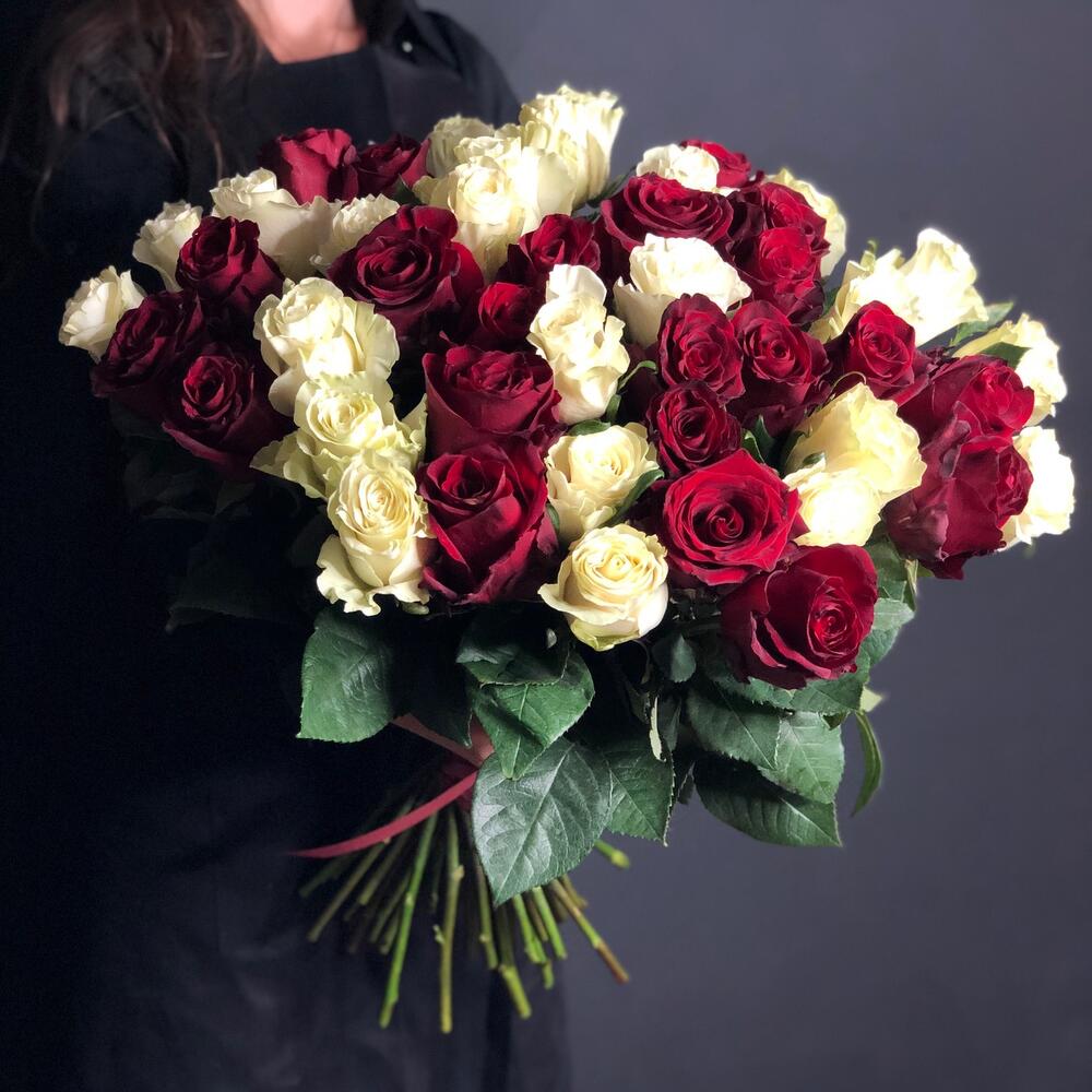 Роза Эквадор 60 см – 51 шт.Лента атласная – 3 шт.