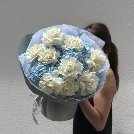 “Эвкалиптическая роскошь” гортензия и пионовидная кустовая роза