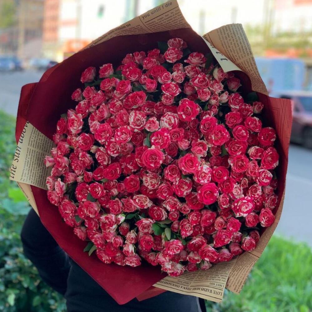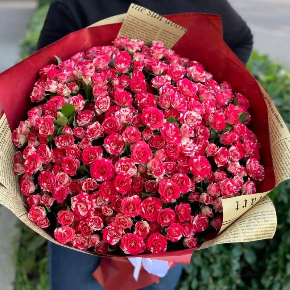 Роза кустовая Фаерфокс – 51 шт.Упаковка дизайнерская – 1 шт.Лента атласная – 1 шт.