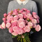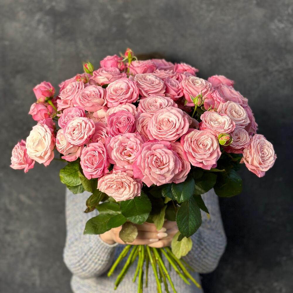 Букет из 25 пионовидных розовых кустовых роз