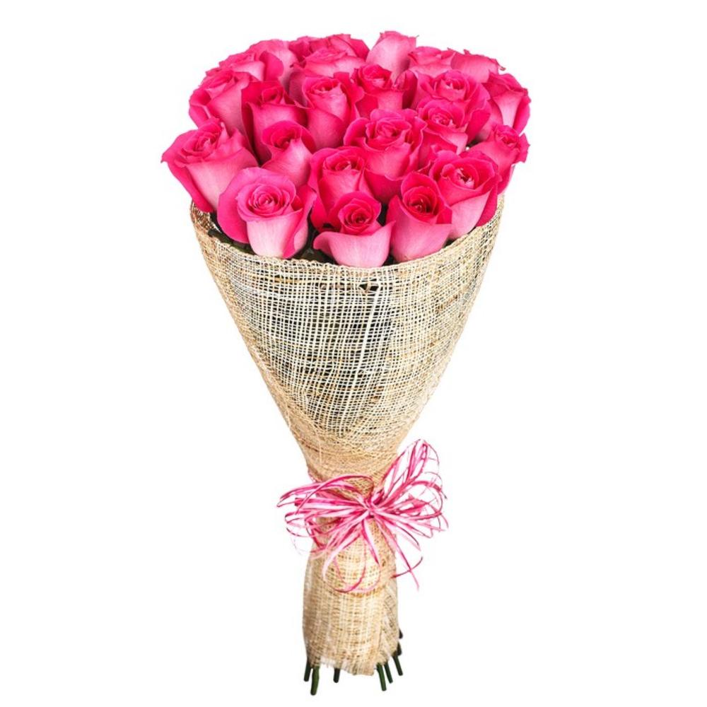 Атласная лента – 1 шт.Упаковка сетка – 1 шт.роза ярко-розовая topaz – 25 шт.