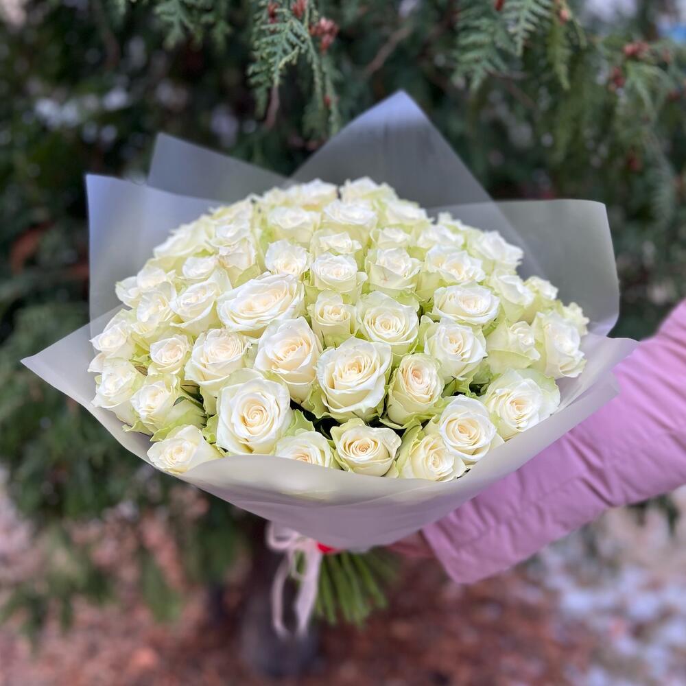 Букет из 51 белой розы (Кения) 30 см