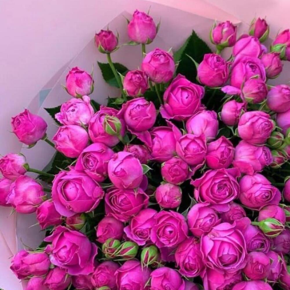 Роза кустовая пионовидная – 51 шт.Упаковка дизайнерская – 1 шт.Лента атласная – 2 шт.Открыточка с вашими пожеланиями – 1 шт.хорошее настроение – 100 шт.инструкция по уходу за цветами – 1 шт.коробка переноска – 1 шт.Кризал – 1 шт.