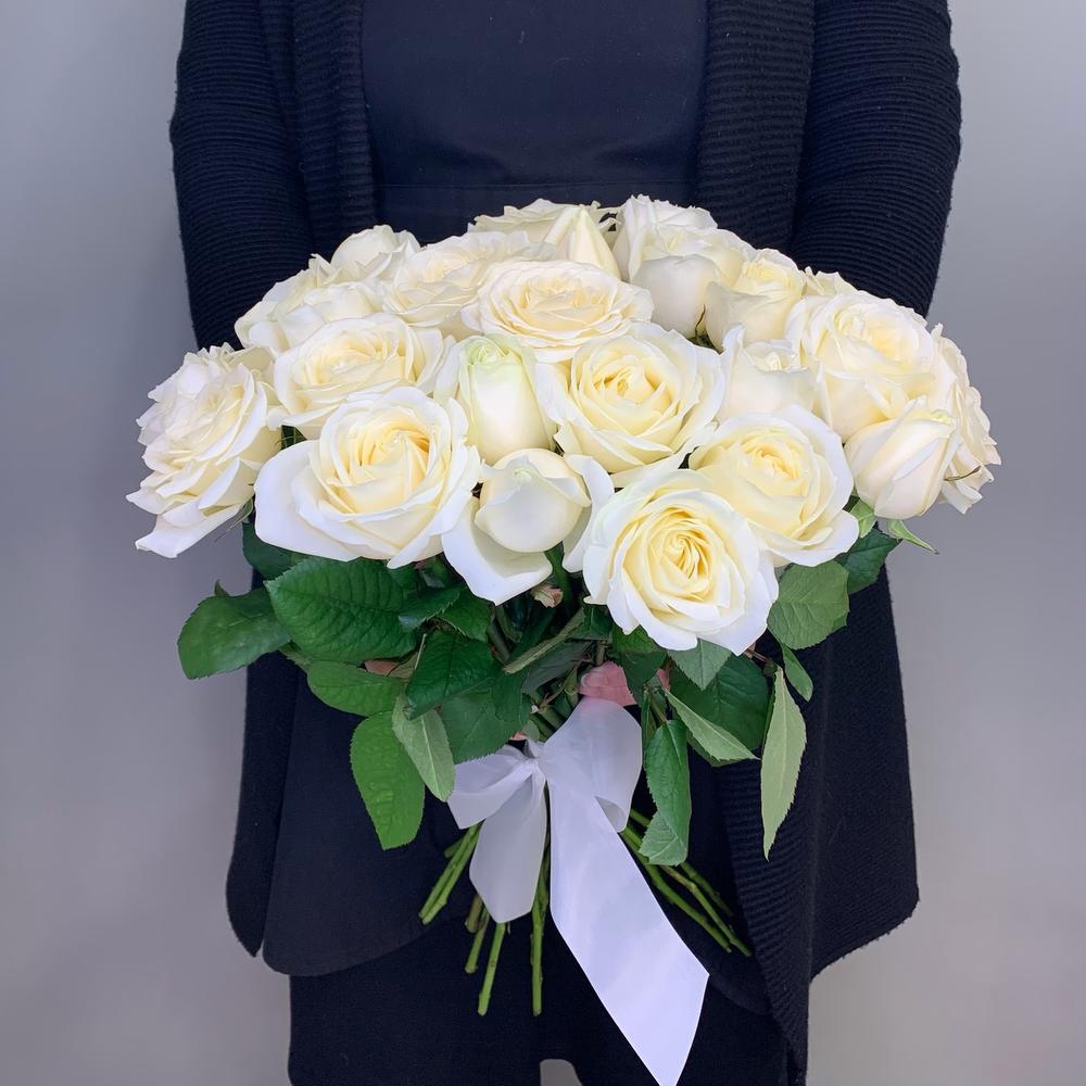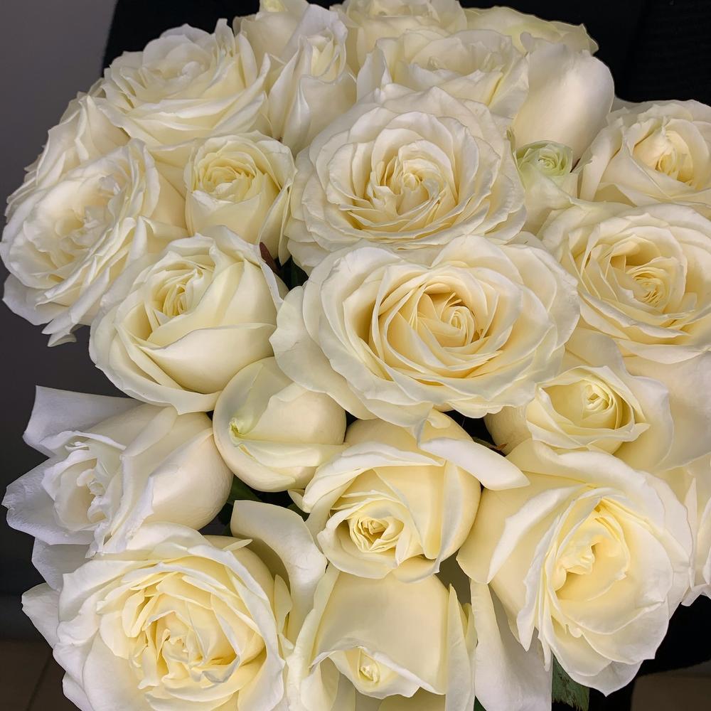 Роскошный букет из белоснежных роз Black edition